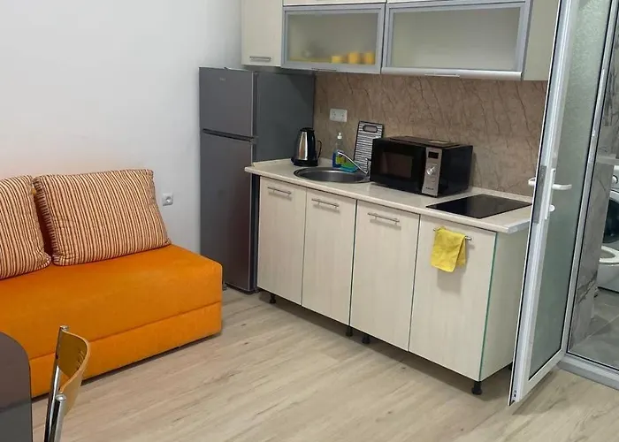 L'appartement fournit une cuisine complète. L'aéroport Aeroport de Bourgas est à une distance de 26 minutes en voiture, et l'arrêt de bus Fregata / Cacao Beach est non loin de la pièce.